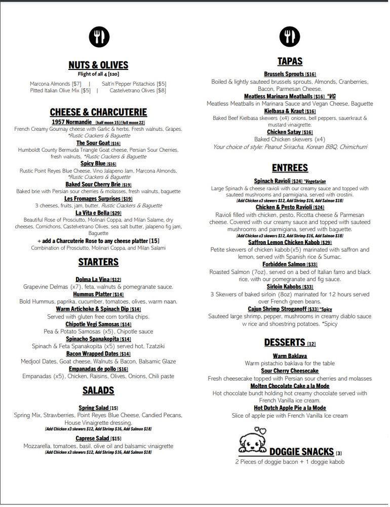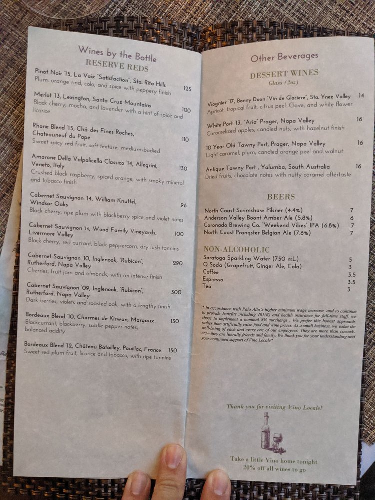 Introducing Vino Locale, a unique tapas and wine bar in Palo Alto offering a wide range of small plates and regional wines. With a focus on vegan and vegetarian options, the menu features dishes like roasted salmon, swordfish skewers, and chicken with rice, all beautifully presented and full of flavor. Customers rave about the intimate and cozy atmosphere, perfect for a night out with friends or a romantic date. The outdoor seating, live music, and happy hour specials add to the charm of this women-owned establishment. Don't miss out on the sweet grilled cheese, chipotle samosa, and California brussels sprouts during happy hour. Vino Locale prides itself on its diverse wine selection, including domestic and international varieties available in different pour sizes. Whether you're a wine connoisseur or just looking for a casual dining experience, Vino Locale promises a memorable evening filled with delicious food and good company.